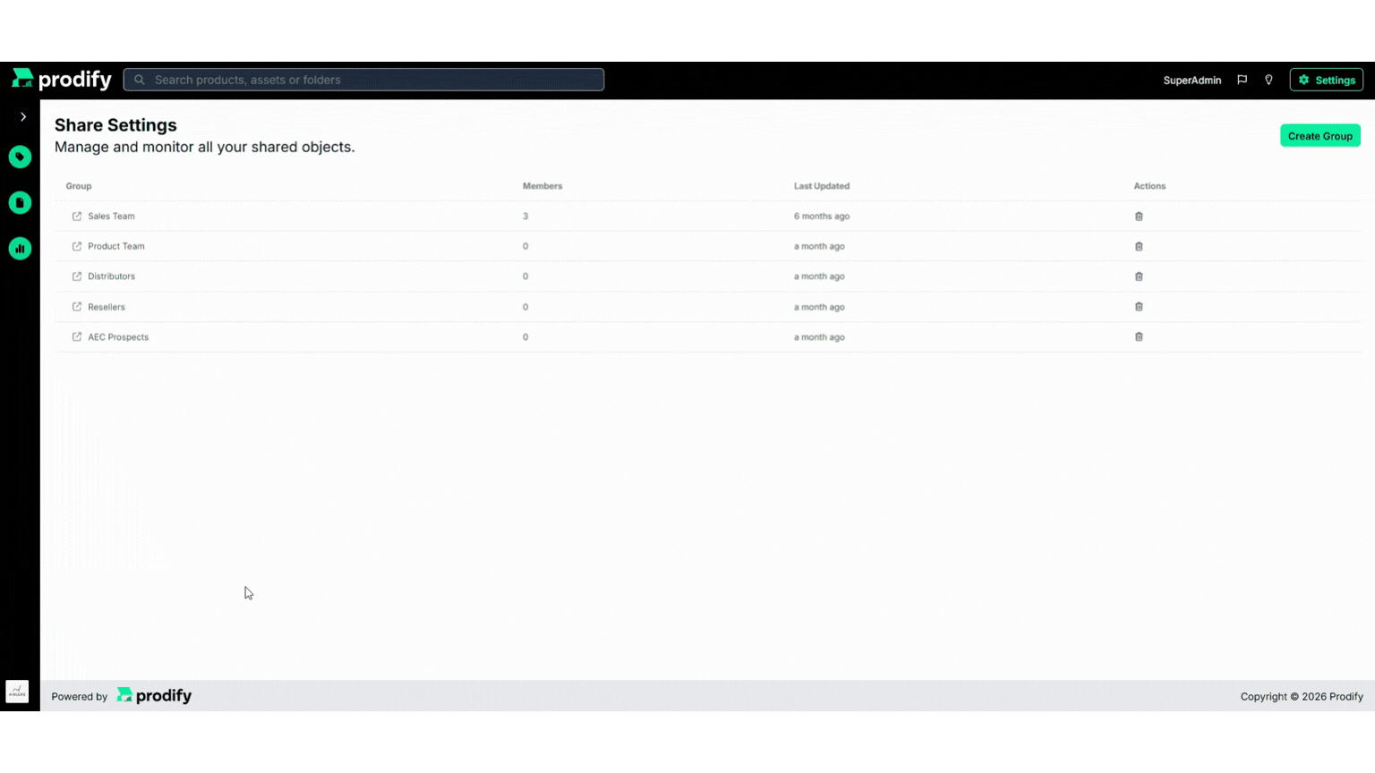 As many as you want! Consider creating groups for internal teams, distributors, reps, sales teams, AEC pros, or any custom audience you need. Groups can be organized by role, design firm, region, product focus, or anything else that makes sense to you.